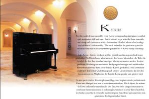 The new K-Series is an innovative change from Kawai. This new K-Series will not be just a succeeding model to that of K-18, 25, 50, 60, 80, but a "Full Model Change".